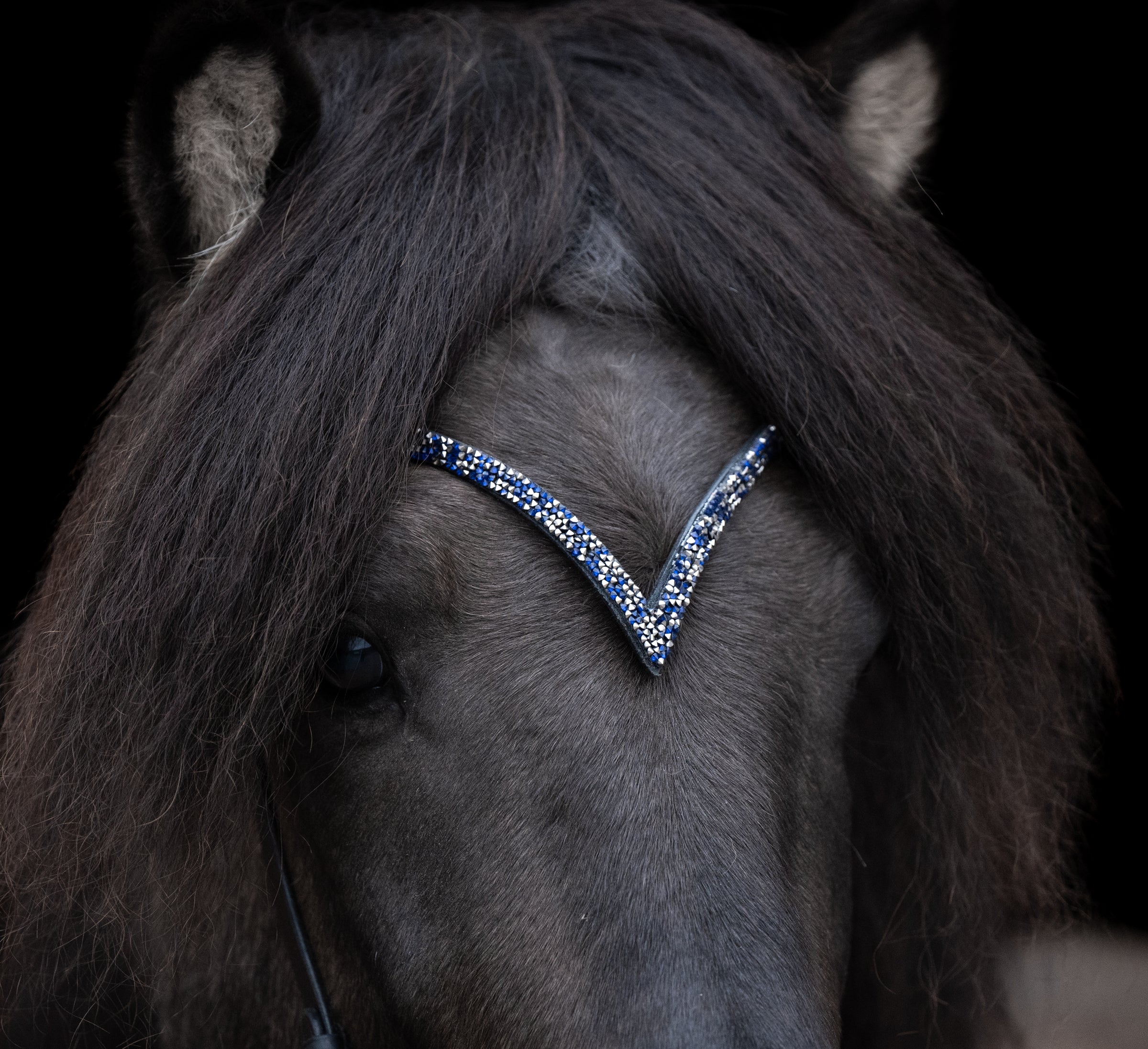 Anatomische Trense V-Stirnriemen - Blau/Grau