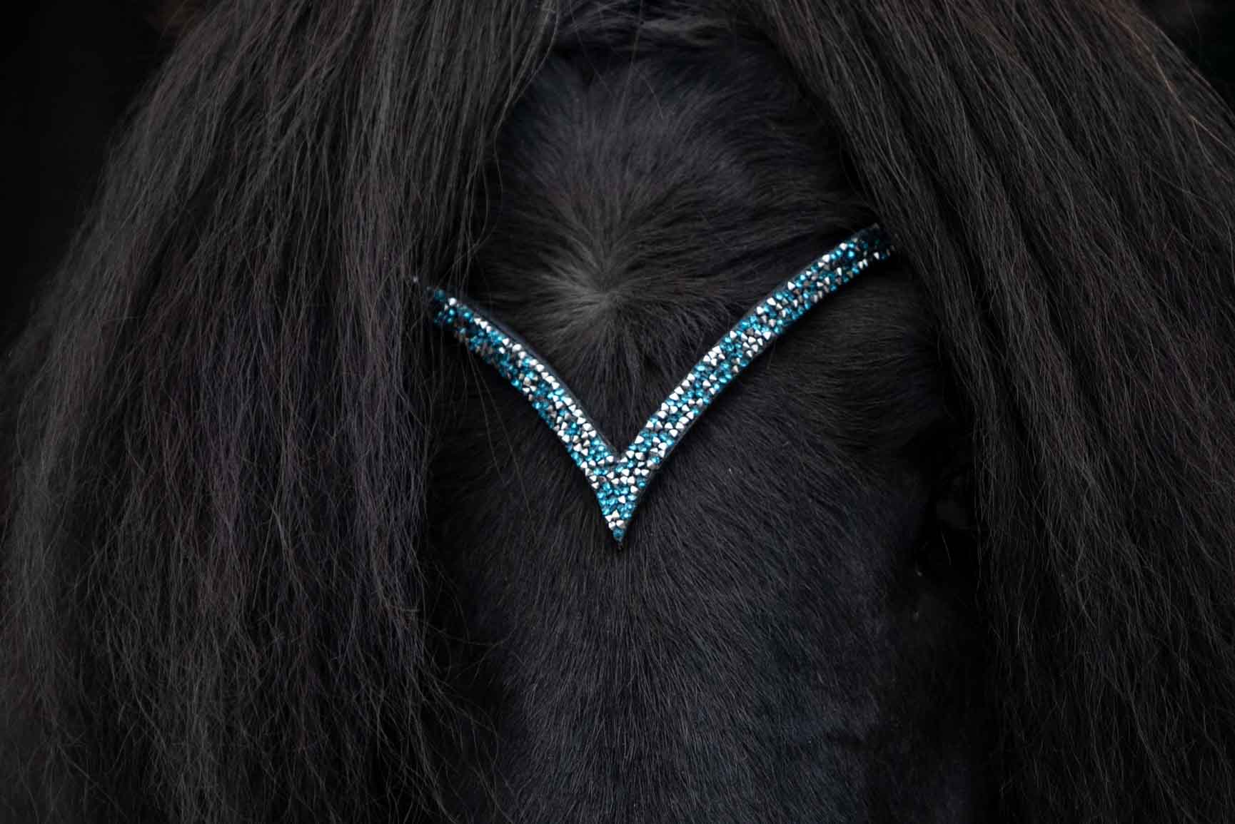 Anatomische Trense V-Stirnriemen - Türkis/Grau