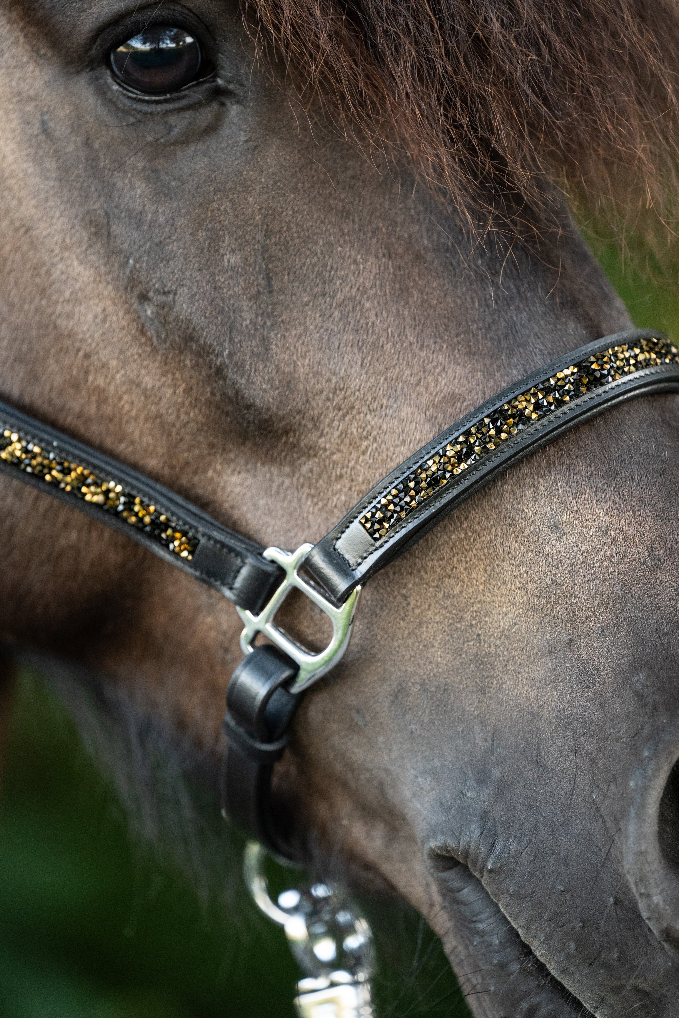 Das CrownHorse Lederhalfter überzeugt mit besonders weicher Polsterung für maximalen Tragekomfort. Es lässt sich im Genick und am Nasenriemen individuell anpassen und ist ein besonderer Hingucker am Pferd.