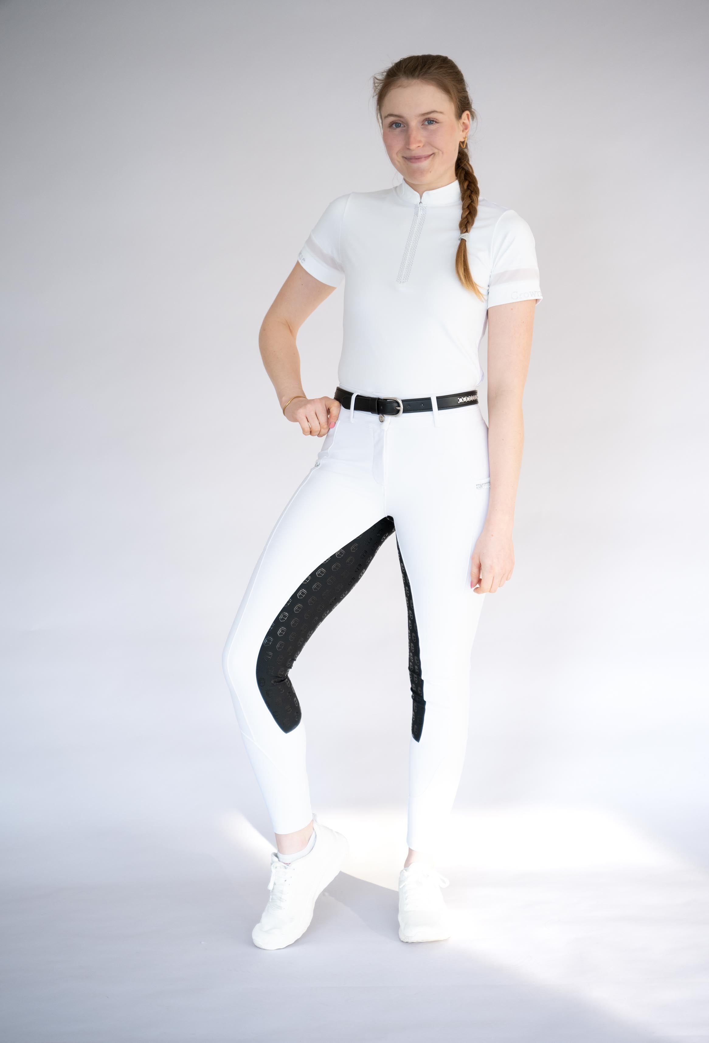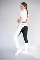 Diese exklusive weiße Reithose vereint herausragendes Design mit höchster Funktionalität und bietet dir das Beste. Das 4-Wege-Stretch-Material garantiert unschlagbare Flexibilität und starken Kompressionseffekt, während die exzellente Verarbeitung für eine perfekte Passform und maximalen Tragekomfort sorgt.
