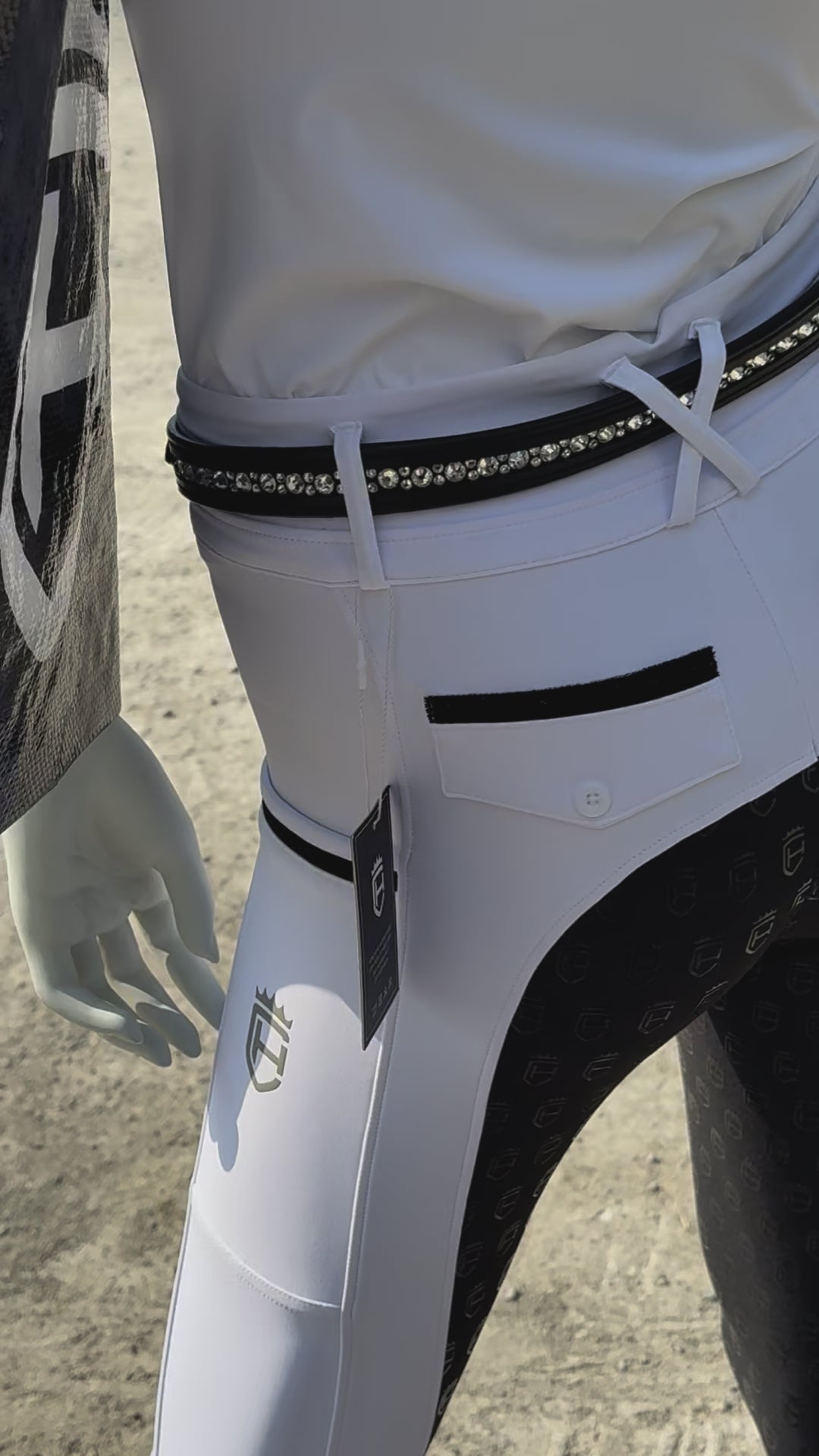 Turnier Reithose "Performance" - Weiß mit schwarzem Glitzer