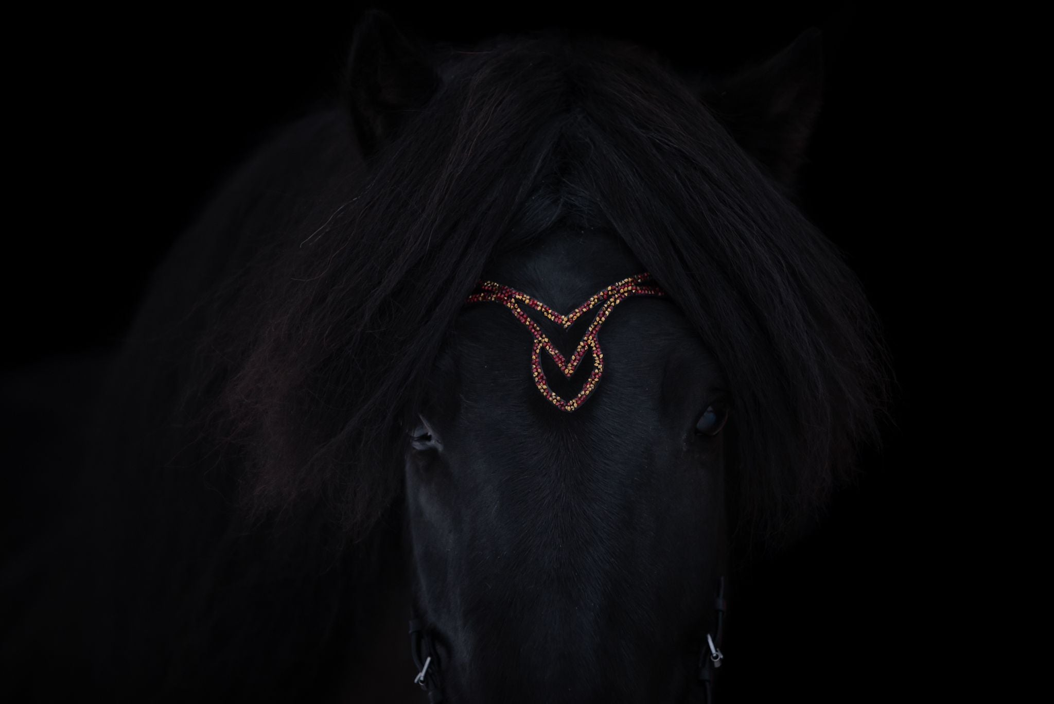 Der Stirnriemen ist ca. 40–42 cm lang, passt sich durch das weiche Leder flexibel an den Pferdekopf an.