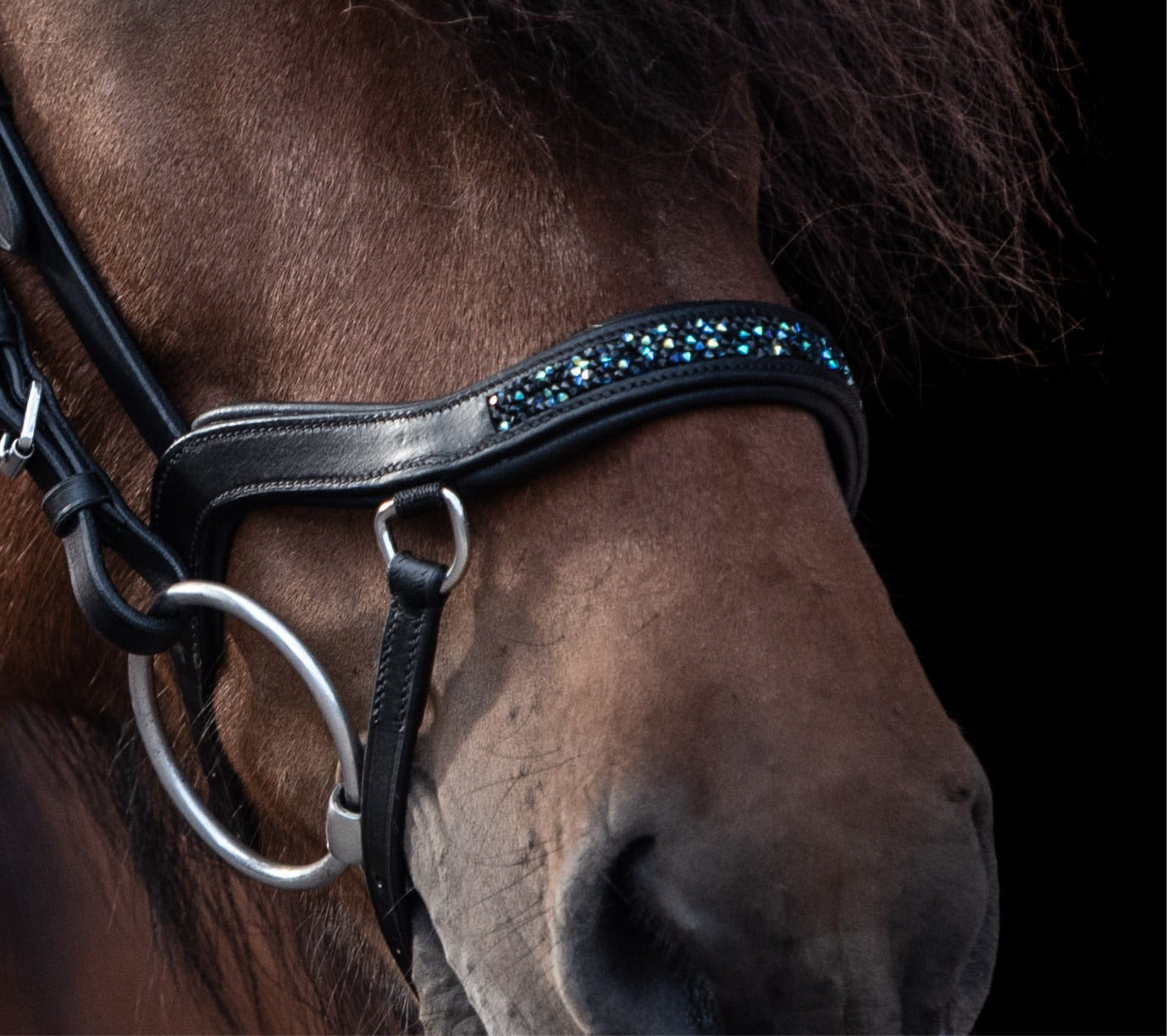 Beidseitige Schnallen gewährleisten eine präzise Anpassung an den Pferdekopf, während die weiche Polsterung an der Nase und der gepolsterte Verschluss zusätzlichen Komfort bieten.