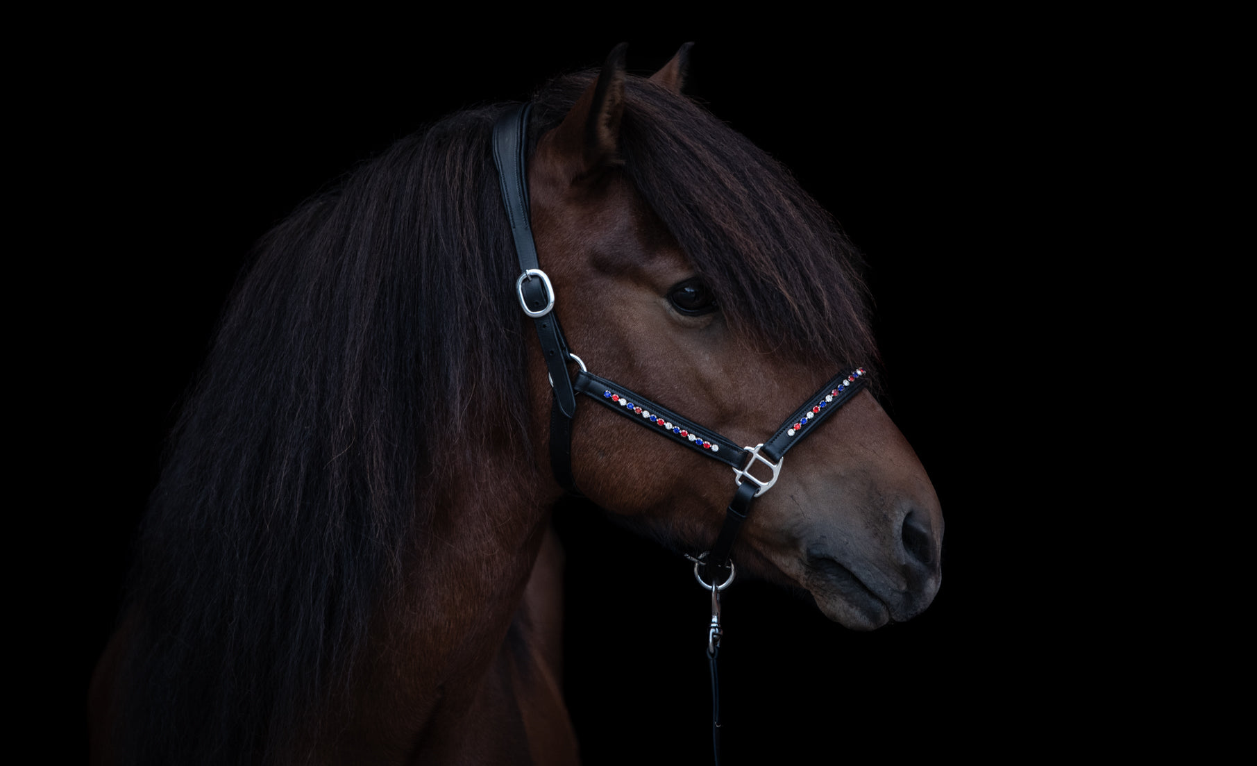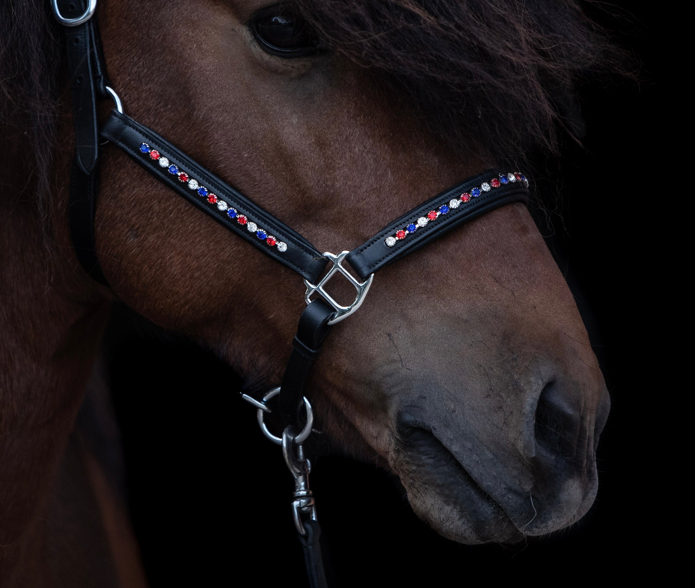 Das CrownHorse Lederhalfter überzeugt mit besonders weicher Polsterung für maximalen Tragekomfort. Es lässt sich im Genick und am Nasenriemen individuell anpassen und ist ein besonderer Hingucker am Pferd.