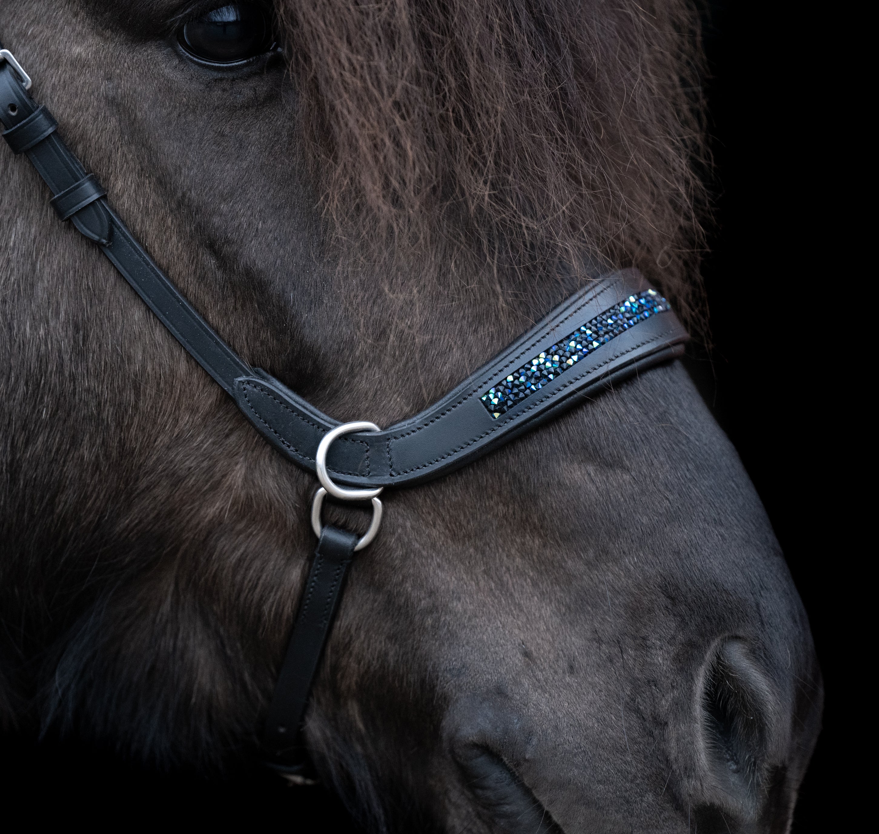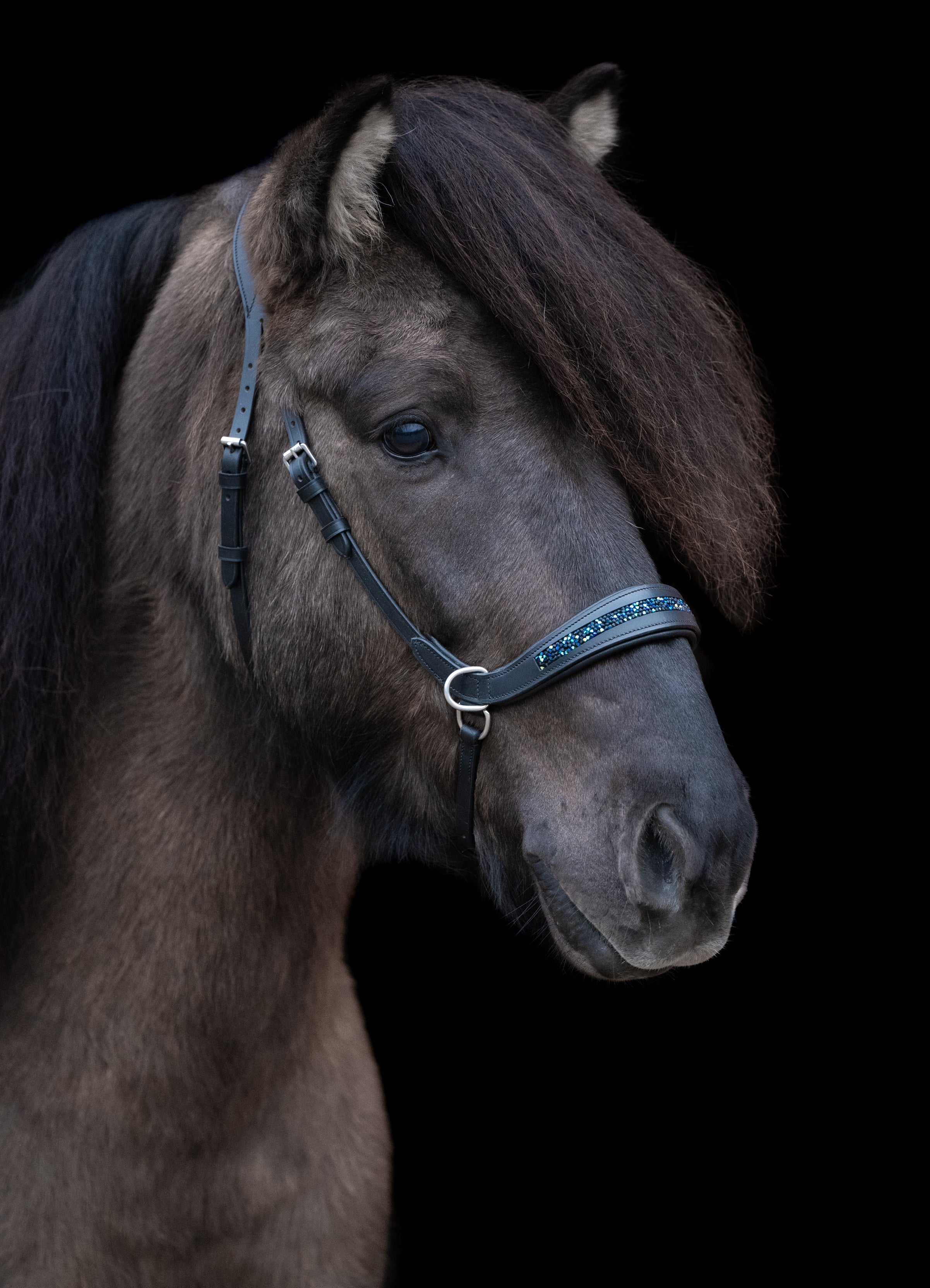 Die gebisslose Trense wird mit Basic Stirnriemen geliefert.